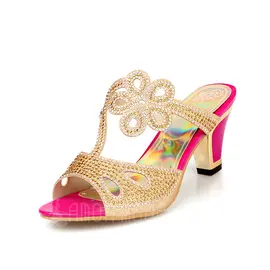 Leatherette Chunky Heel Sandals Slingbacks With Rhinestone shoes by Amormoda