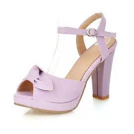 Amormoda - Leatherette Chunky Heel Sandals Pumps With Bowknot shoes