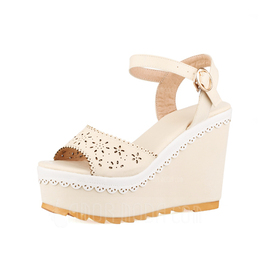 Amormoda - Leatherette Wedge Heel Sandals Slingbacks With Buckle shoes