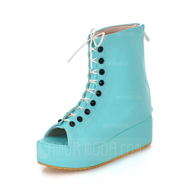 Amormoda - Leatherette Wedge Heel Sandals Platform Peep Toe With Lace-up shoes