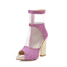 Leatherette Chunky Heel Sandals Peep Toe shoes by Amormoda