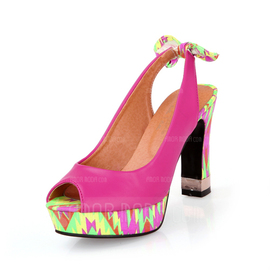 Leatherette Chunky Heel Sandals Peep Toe Slingbacks shoes by Amormoda