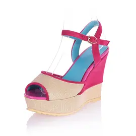 Leatherette Wedge Heel Sandals Peep Toe Slingbacks With Buckle shoes by Amormoda