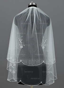 Amormoda - Two-tier Fingertip Bridal Veils With Beaded Edge
