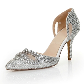 Amormoda - Women's Patent Leather Stiletto Heel Closed Toe Pumps With Imitation Pearl Rhinestone