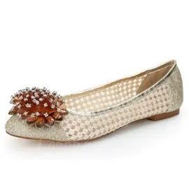 Real Leather Flat Heel Flats Closed Toe With Rhinestone Crystal shoes by Amormoda
