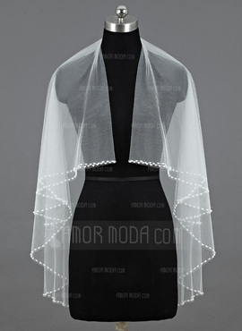 Two-tier Fingertip Bridal Veils With Pearl Trim Edge by Amormoda