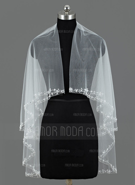 Two-tier Fingertip Bridal Veils With Beaded Edge by Amormoda